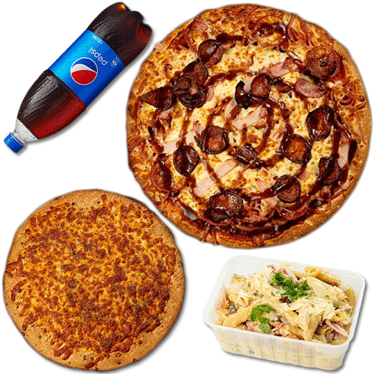 Dinner Done Deal (D.D.D)$601 X Classic Pizza, 1 X Premium Pizza, 1 X Pasta, 1 X Drink- Hi-Five Pizzas$995 Classic Large Pizza, 2 X Garlic Bread, 2 X 1.25L Drink